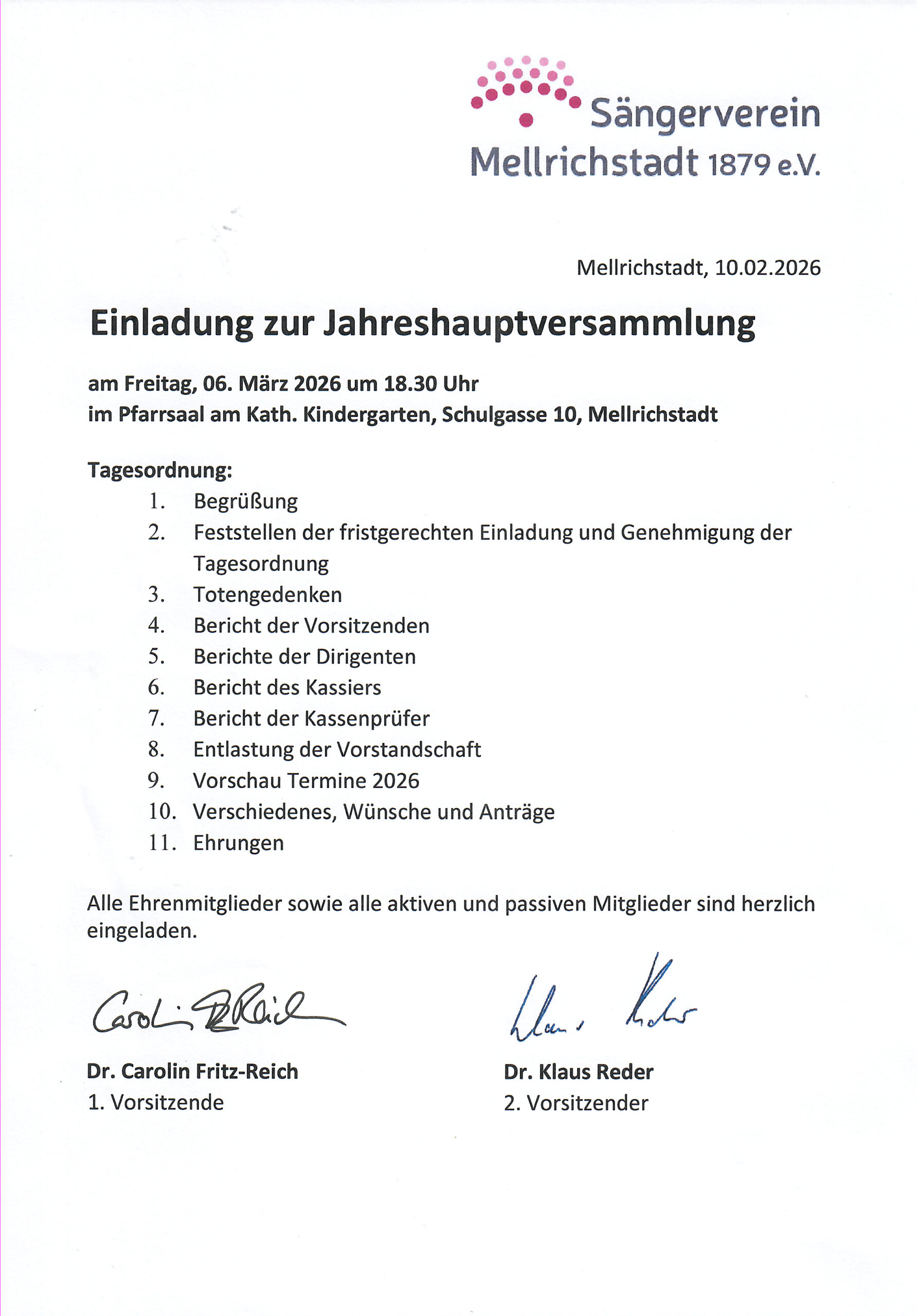 Mellrichstädter Sängerverein traf sich zur Jahreshauptversammlung